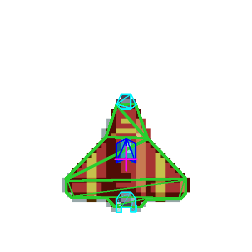 This spaceship model is based on the original Space Invaders videogame. While the code for the model is still there and can be easly activated, it has been deprecated in favor of Spaceship model 2.
